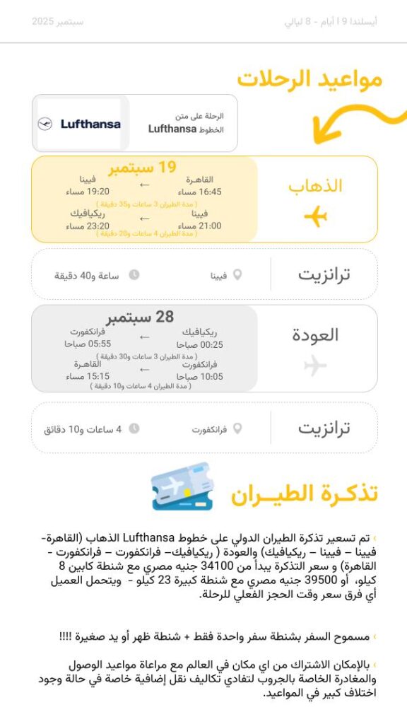 - Your return flight to Cairo on the suggested Lufthansa itinerary is scheduled for 12:25 AM (just after midnight).
