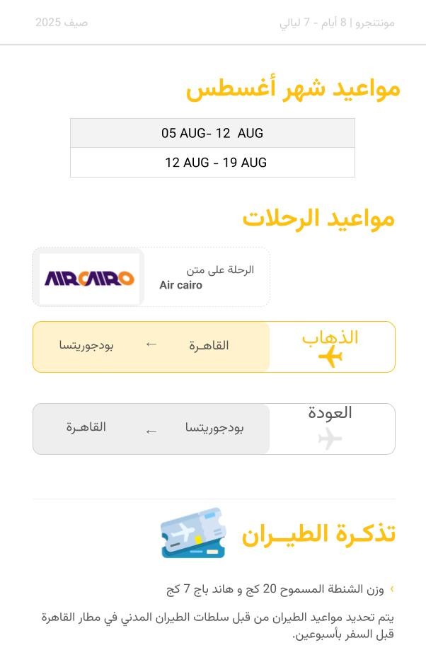 - Return flights to Montenegro on Air Cairo